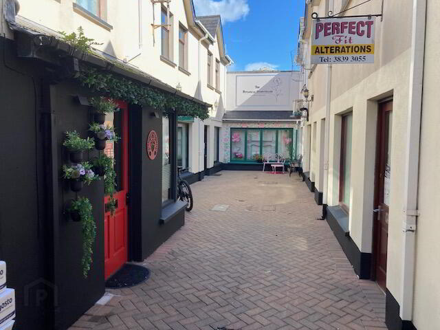 A small business courtyard, situated within a prominent town centre location, benefiting from high levels of vehicular and pedestrian traffic, adjacent to a public carpark.